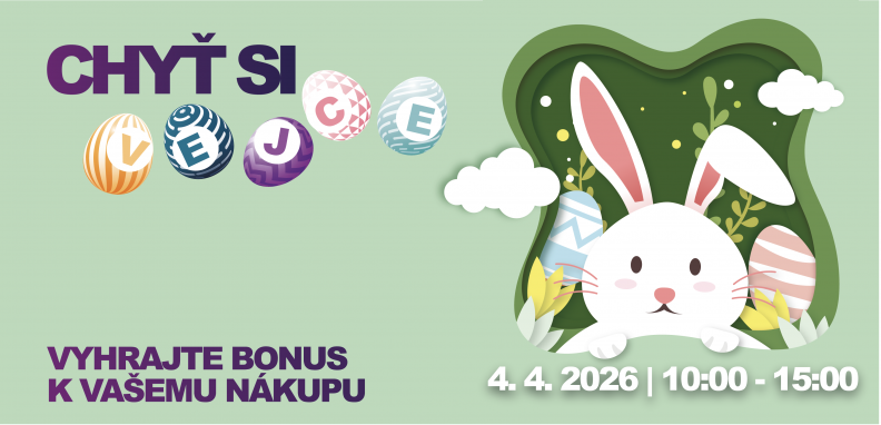 V čase od 11:00 do 13:00 bude nákupním centrem procházet velikonoční maskot zajíce, který bude dětem rozdávat Kinder vajíčka a zpříjemňovat atmosféru.